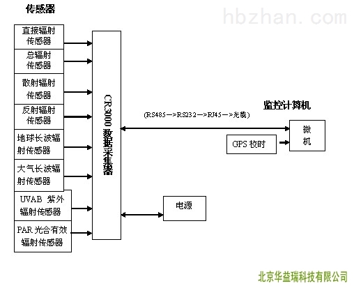 仪器的主要组成部分为CR3000数据采集器及其8个辐射传感器,3个通风罩,一个太阳跟踪器,数据采集器控制箱,及支架和供电系统组成.系统支架把数据通过串口或光缆传输到监控计算机。
