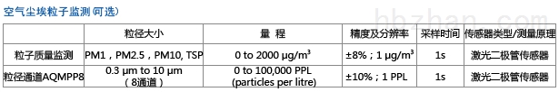 2)空气尘埃粒子监测(如:PM10,PM2.5,PM1)以及不同粒径的颗粒物分布情况(粒径大小:0.3 to 10 μm, 8个粒径通道);