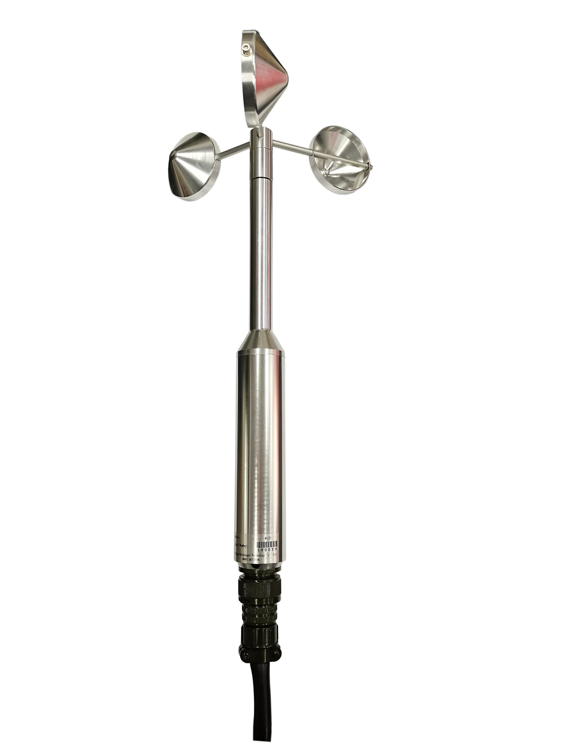 W10风速传感器是一种航空铝合金材质的三杯式机械风速计。它由结实轻巧的航空铝合金风杯、纤细的降阻立柱和传感器体构成,内部选用轴承和光电斩波器进行风速测量,以确保风速测量准确、可靠、精度高。W10风速传感器的风杯带动光电斩波器同步旋转,光电斩波器输出的脉冲信号频率与风速大小成正比例关系。