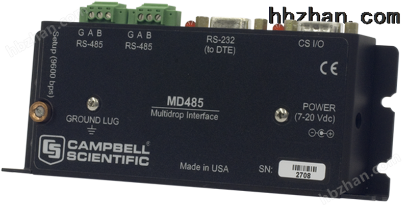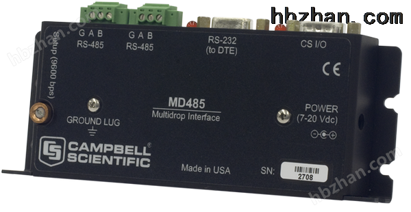 产品介绍/ PRODUCT PRESENTATIONMD485是一个非常智能的RS-485接口,可以把计算机和多个数据采集器连接在一起,使用两个RS-485终端可以很轻松的组成一个网络。对于网络,一个RS-485可以提供输入,另外一个可以提供输出,所有的总电缆长度不能超过4000英尺。在计算机上使用Campbell的数据采集器软件LoggerNet或者相似的软件,就可以实现通讯连接和控制。