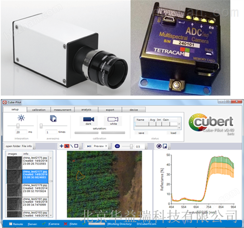 多光谱成像仪采用ADC Micro多光谱相机,其像素能够达到320万像素其重量只有90克,相机支架采用高强度的野外专用固定支架来安装相机,专业设计通风降温防水装置,保证系统的稳固。